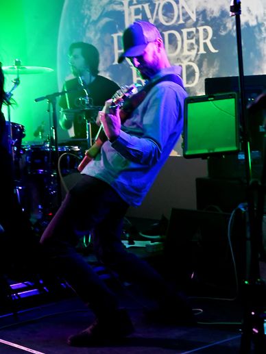 Eric is a Wildman to say the least. You might find yourself in the crows taking a sip of your beer only to look up and find Eric in your face playing a solo or shooting GoPro selfies.